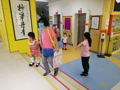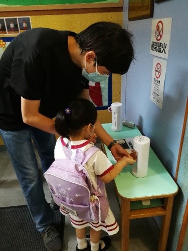濠江中學附屬幼稚園於今天舉行2020/2021學年開學禮,家長及幼兒入校前,需進行健康申報、接受體溫監測及消毒雙手,幼兒由家長陪同到所屬課室,流程順暢,家長均表示幼兒能恢復到幼稚園上學,感到非常興奮,同時認為校方之防疫措施嚴謹,讓他們十分放心。
