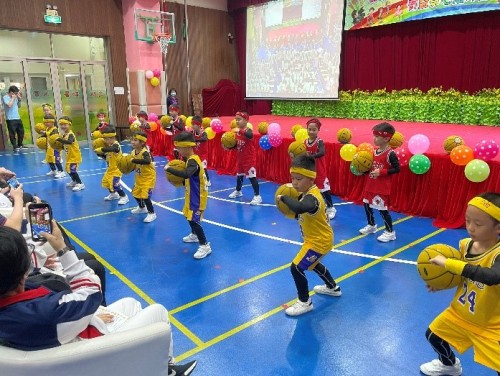 古詩朗誦《江南》,將大家帶入了蓮葉何田田的水鄉;非洲鼓《The Lion sleeps tonight》則將大家帶到了廣袤的草原;節奏樂《棒棒糖》呈現了一個可愛、甜蜜的糖果世界;熱情奔放的《森巴肚皮舞》完美展現了夏天的活力;《詩詞功夫》將剛勁有力的功夫融入到了精典古詩,詩之柔美、武之剛強淋漓盡現;活力四射的《籃球viva》以高超的花樣拍球、運球技巧贏得了滿堂喝彩,讓人難以相信這群“專業”籃球運動員竟是幼稚園小朋友!