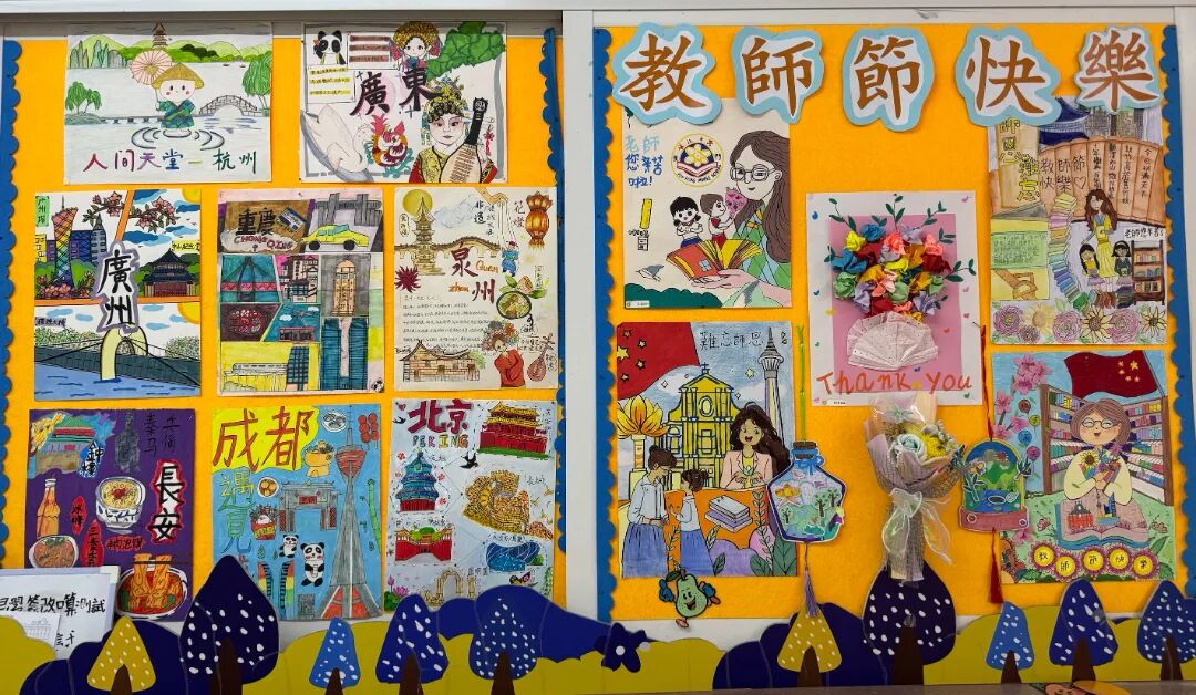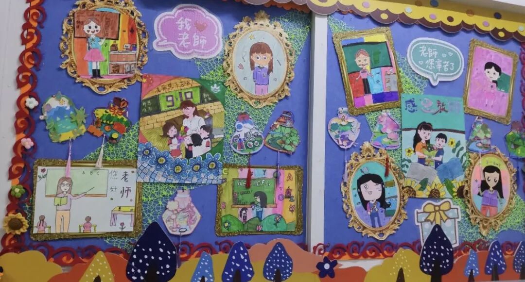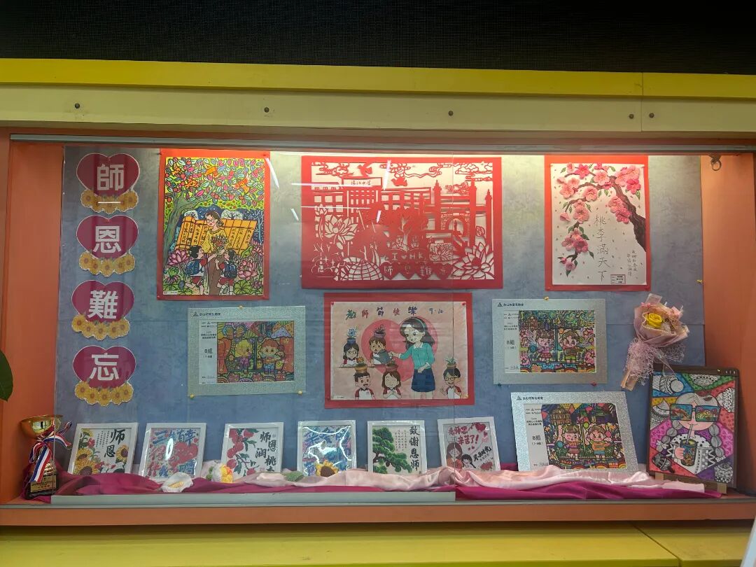 校園展板上,同學們的教師節主題創作同樣亮眼——手工掛飾、自製賀卡、彩色海報等作品琳瑯滿目。筆尖的圖案、剪裁的花紋、貼合的裝飾,每一處細節都飽含對老師的感激與愛戴,以藝術之聲訴說「老師,您辛苦了」。