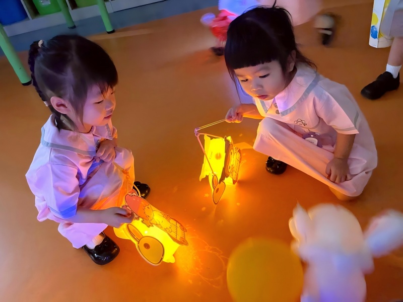 On October 6th, the Mid-Autumn Festival, children brought lanterns and traditional food back to school to share. Traditional paper lanterns, lanterns shaped like the Jade Rabbit, Sun Wukong, princesses, and cartoon characters were on display, and the children introduced their lanterns to each other. Through games, stories, and tasting, the children learned about the Mid-Autumn Festival in a joyful atmosphere, understood traditional culture through participation, and experienced the joy of sharing.
