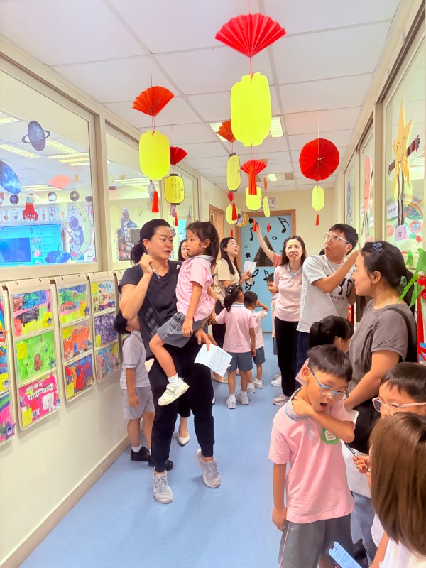 From September 29th to October 6th, the kindergarten held a series of Mid-Autumn Festival activities. Teachers carefully prepared various activities such as art & craft, stories, and games for the children to learn about the Mid-Autumn Festival. During the morning pick-up period, K3 students participate in a lantern riddle guessing activity. Parents accompany their children to read the riddles, think about the answers, and enhance parent-child interaction in the process.