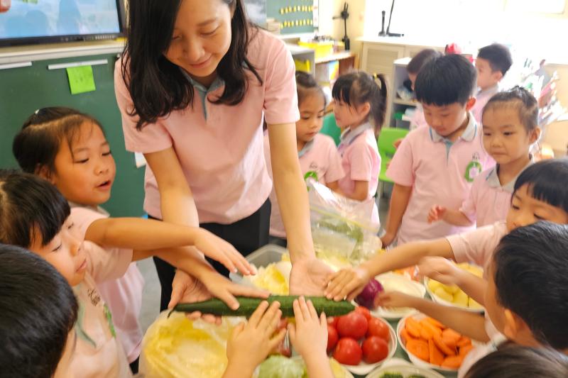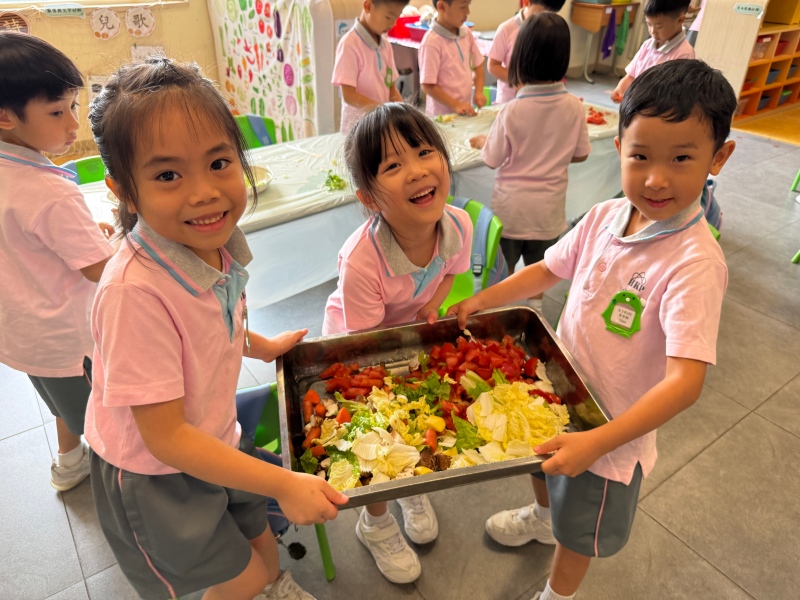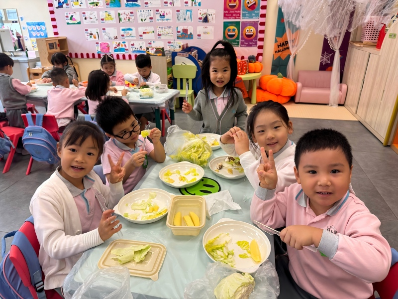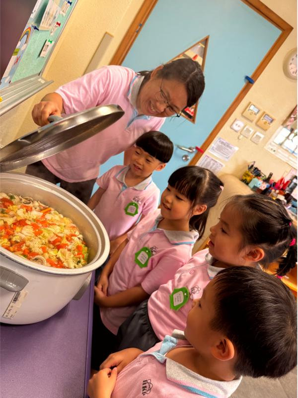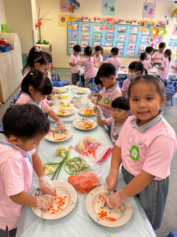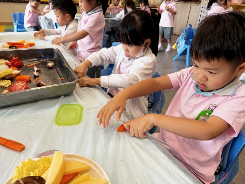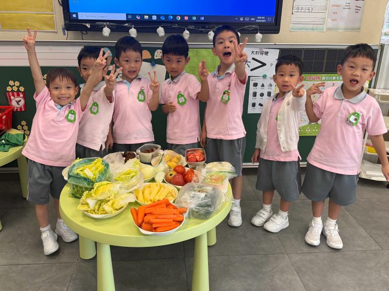 Through the health education themed activities in K3, the children learn about the food pyramid and understand that good health requires a combination of diet, exercise, and sleep habits. A vegetable soup cooking activity was specially organized to help them explore the health benefits hidden in vegetables.