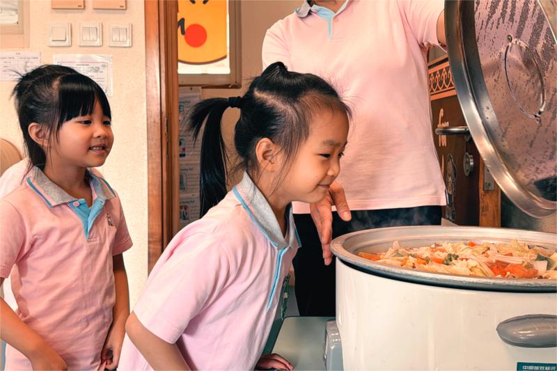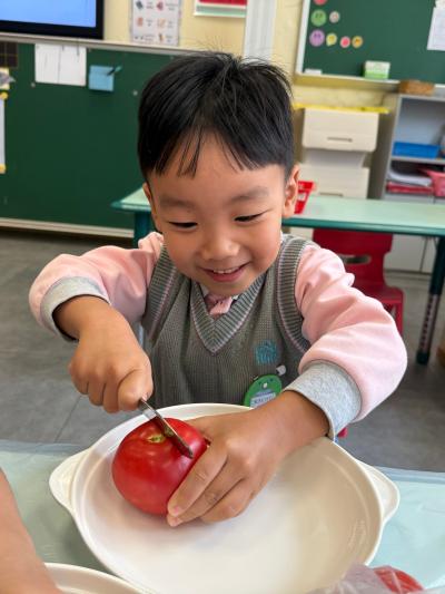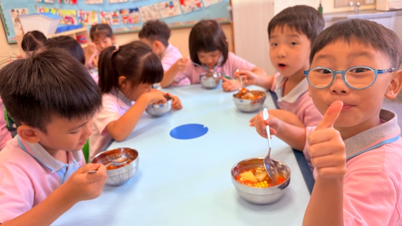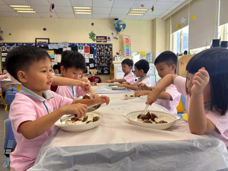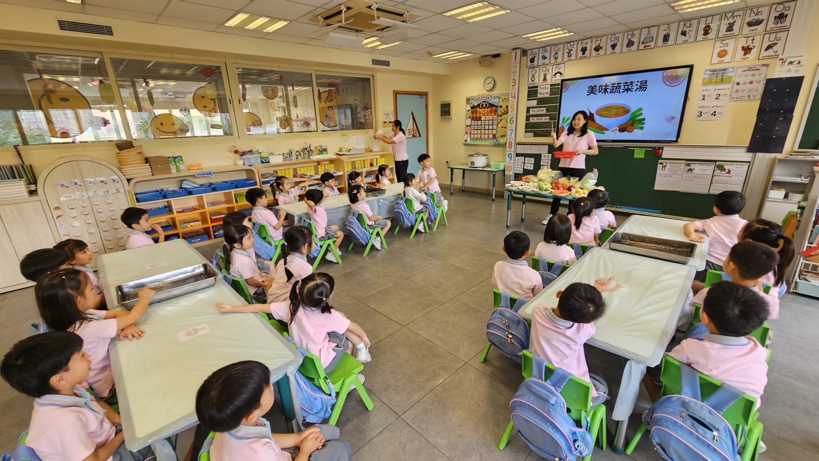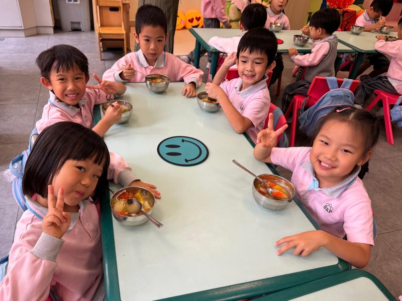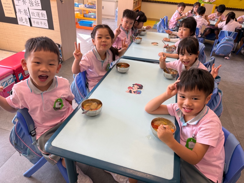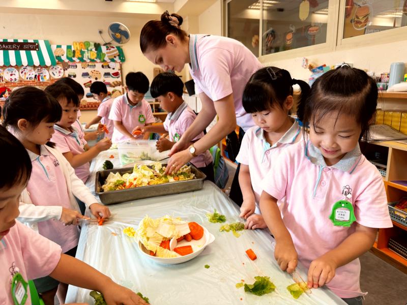 Through the health education themed activities in K3, the children learn about the food pyramid and understand that good health requires a combination of diet, exercise, and sleep habits. A vegetable soup cooking activity was specially organized to help them explore the health benefits hidden in vegetables.