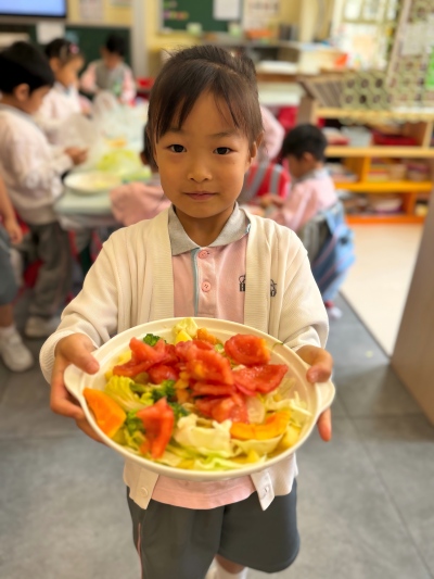 Through hands-on experiences of looking, smelling, making, and tasting, young children gradually develop a love for vegetables and understand that vegetables are good friends that help us grow healthily. With the cooperation of parents, who personally take their children to buy vegetables, and under the guidance of teachers, children gain a comprehensive understanding of vegetables from daily life and activities, recognizing their names and benefits to us. Finally, everyone enjoyed the vegetable soup they had cooked themselves, learning cooperation and sharing, and experiencing the joy of success – it was so delicious!