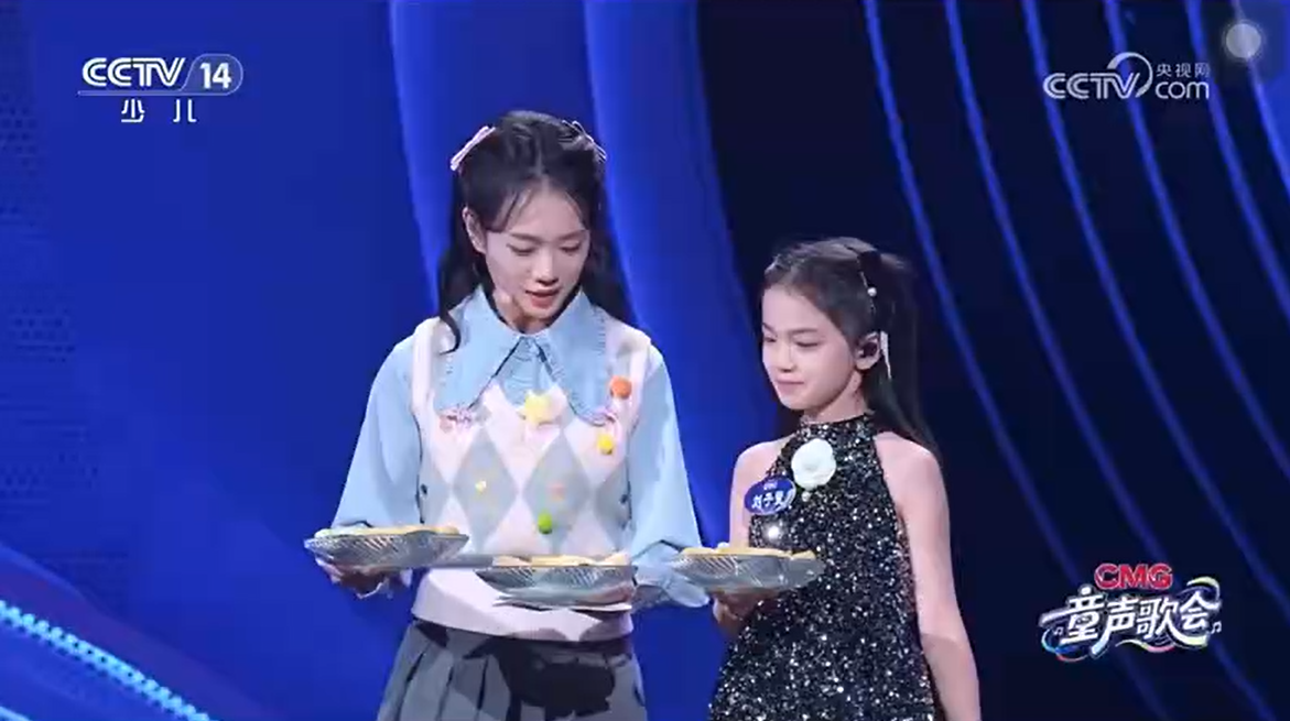 In the show, Liu Zixuan exhibited a steady performance style, with a pure and captivating voice. Her lively and hopeful rendition of "Green Light" shone brightly, earning enthusiastic applause from the audience and sharing the beauty of childhood innocence with viewers across the nation. She also acted as a cultural ambassador, bringing Macau’s famous snack, egg tarts, to the event, allowing guests and children to experience the beauty of Macau's blend of Eastern and Western cultures.