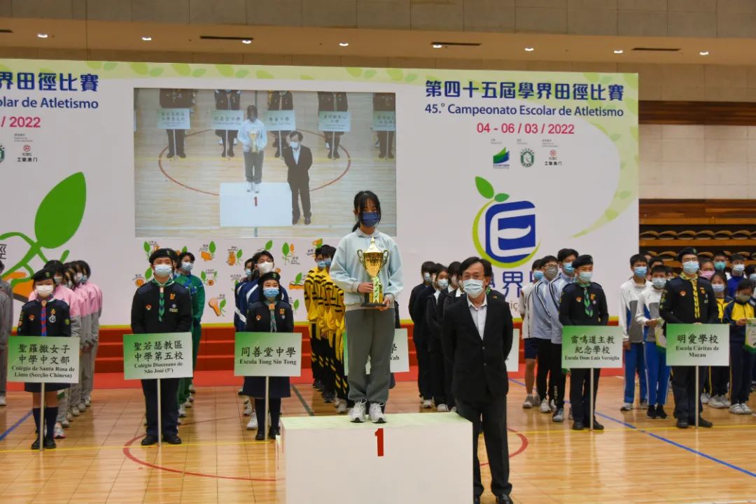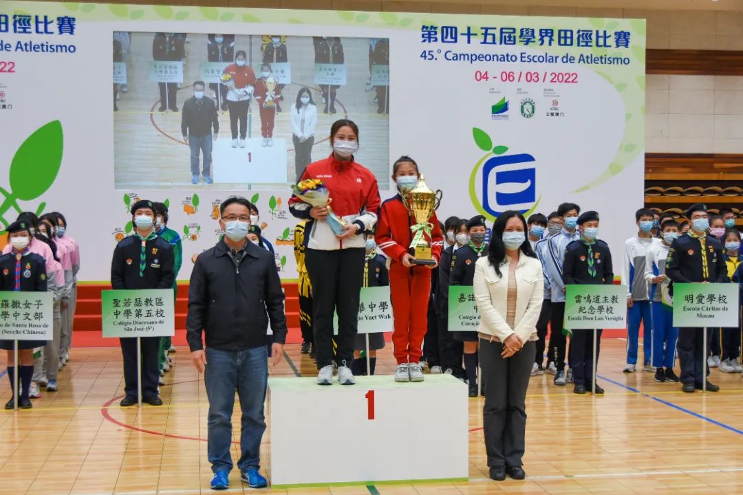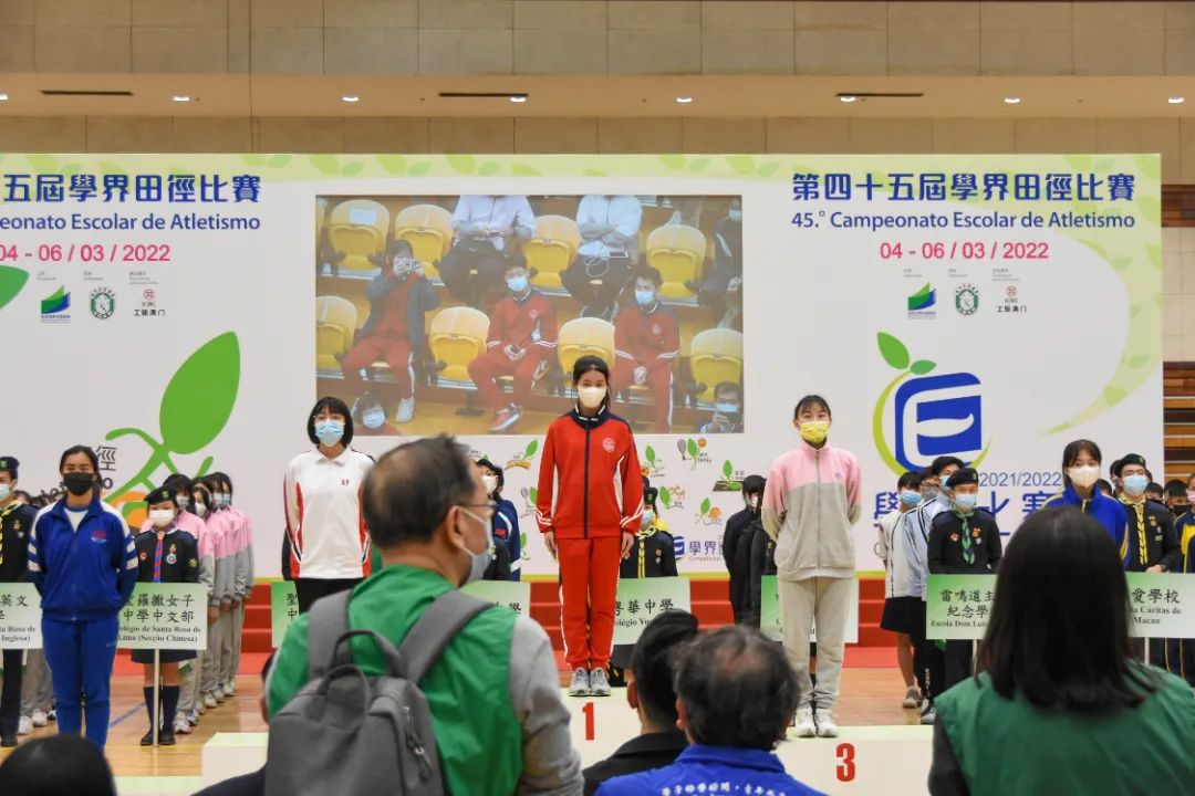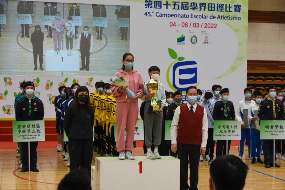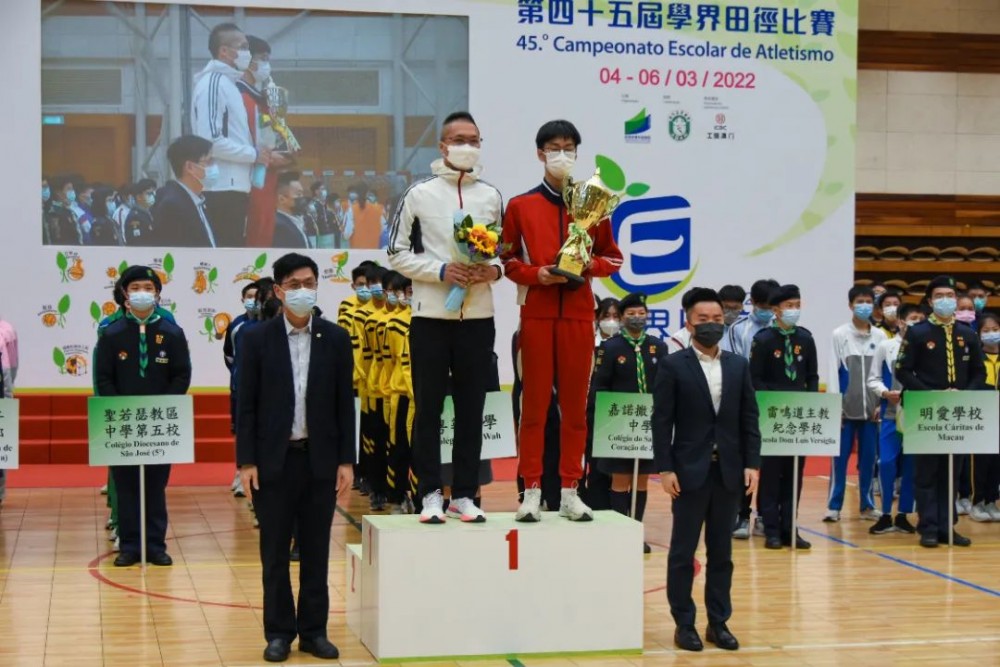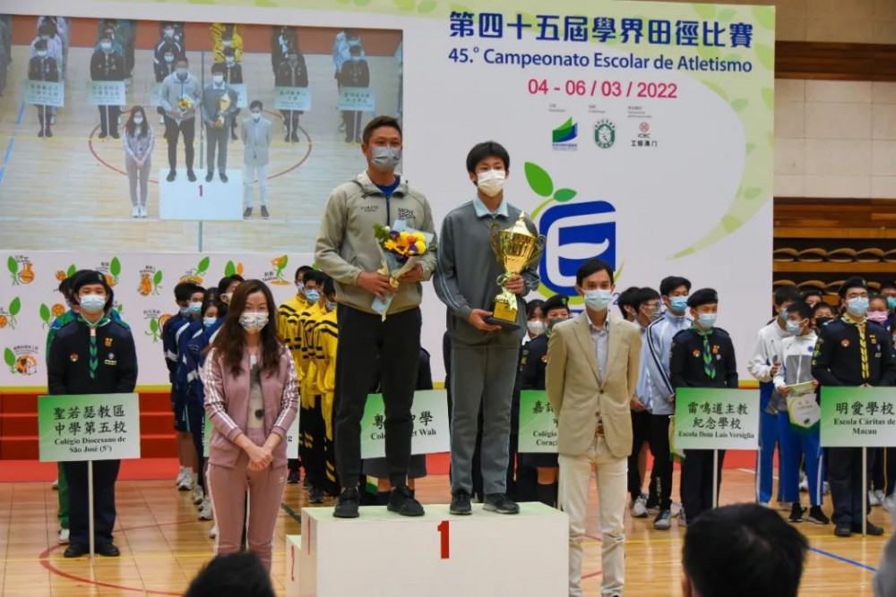 The school athletes won the championship in Men's Group B, Men's Group C, Men's Group E and Women's Group E after a fierce competition at the Macau Olympic Sports Center Stadium from 4 to 6 February 2022. Leung Lok Yiu (HKP) won the individual championship in Men's Group C and broke the academic records of 100M and 200M meters; Pak Ho Ching(HKP) won the individual championship in Women's Group E; Wong Joo Kee (HKP) broke the academic record of High Jump in Women's Group C; Wong Ching Sam, Chan Ho Yeung, Leung Cheuk Seng and Lui Chi Hang broke the academic record of 4×400M meter relay in Men's Group B.