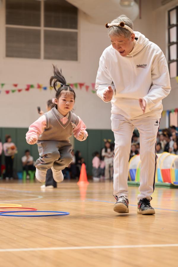 活動分別在幼稚園七樓體育館及操場舉行,K1與K2、K3級組的孩子們在家長陪伴下熱情參與。親子律動表演率先登場,孩子與家長精神飽滿、舞姿活潑,瞬間點燃現場氛圍。隨後的趣味遊戲考驗了親子間的默契,也讓孩子們在奔跑、跳躍與合作中展現勇敢與自信。現場觀眾們的加油助威聲此起彼伏,場面熱鬧非凡。透過這次活動,孩子們不僅鍛鍊了身體,體驗了團隊合作的樂趣,更感受到親情的溫暖。家長們也與孩子共享健康快樂的時光,留下珍貴的回憶。