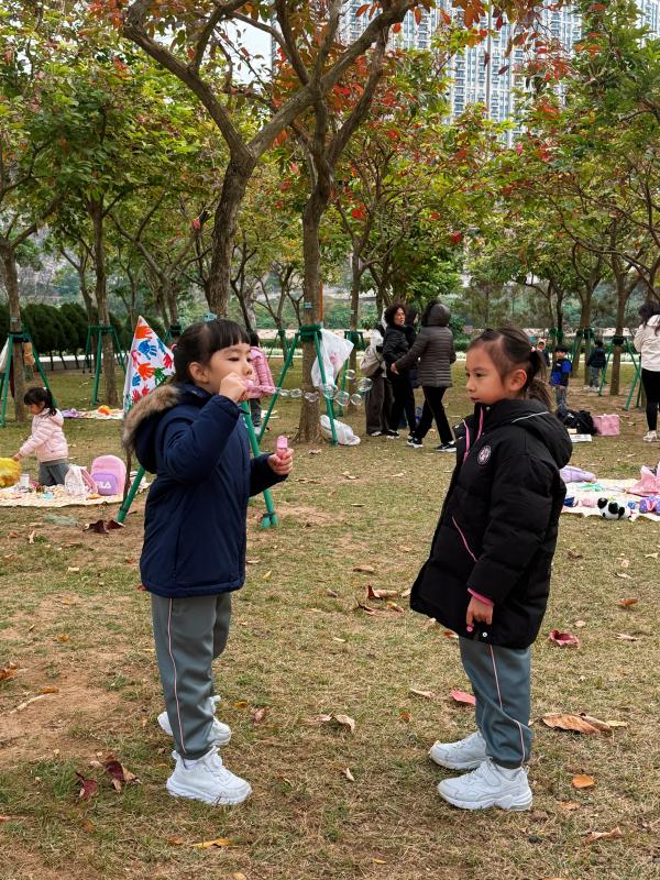當天晨間,幼兒們帶著心愛的玩具與零食,在課室裡分享交流,笑聲洋溢。九點十分,家長們已在樓下集合,與孩子們牽手出發。一路上,師生與家長有序過馬路、走天橋,安全抵達中央公園。孩子們在遊樂場盡情奔跑嬉戲,與同伴快樂玩耍。另一組幼兒則在龍環葡韻認識葡式建築,並於草地上野餐遊玩,享受愉快的時光。活動在歡樂氛圍中圓滿結束,幼兒依依不捨與同伴道別。