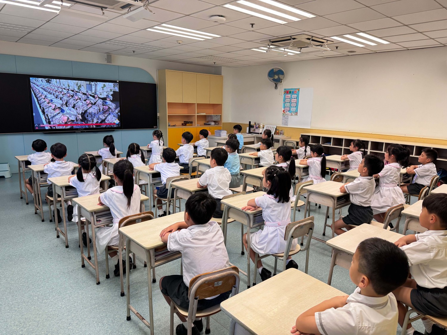9月3日,澳門濠江中學附屬英才學校小學部沉浸在莊重而熱烈的氛圍中,全體師生滿懷期待,準時通過直播觀看了紀念中國人民抗日戰爭暨世界反法西斯戰爭勝利80周年閱兵式。