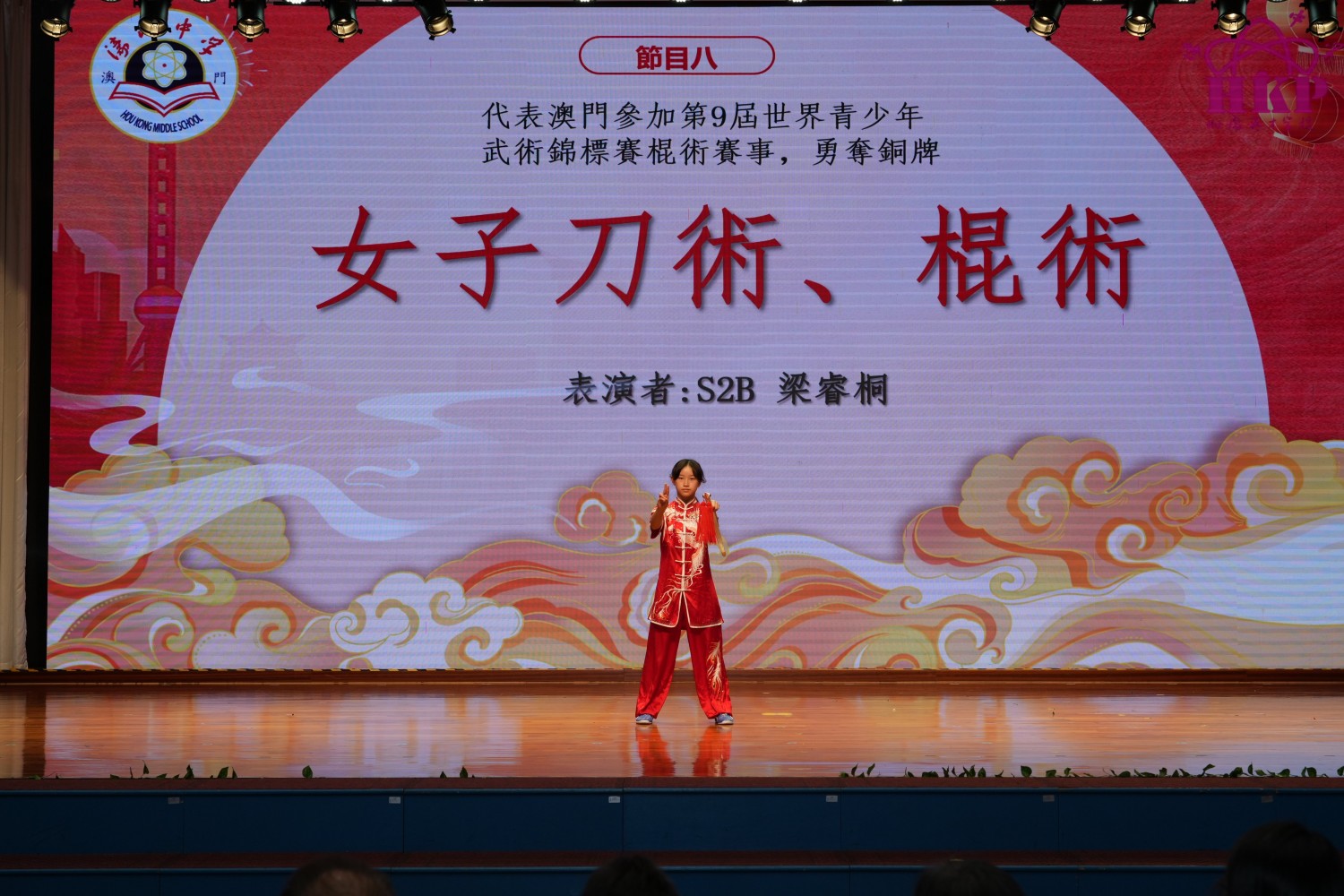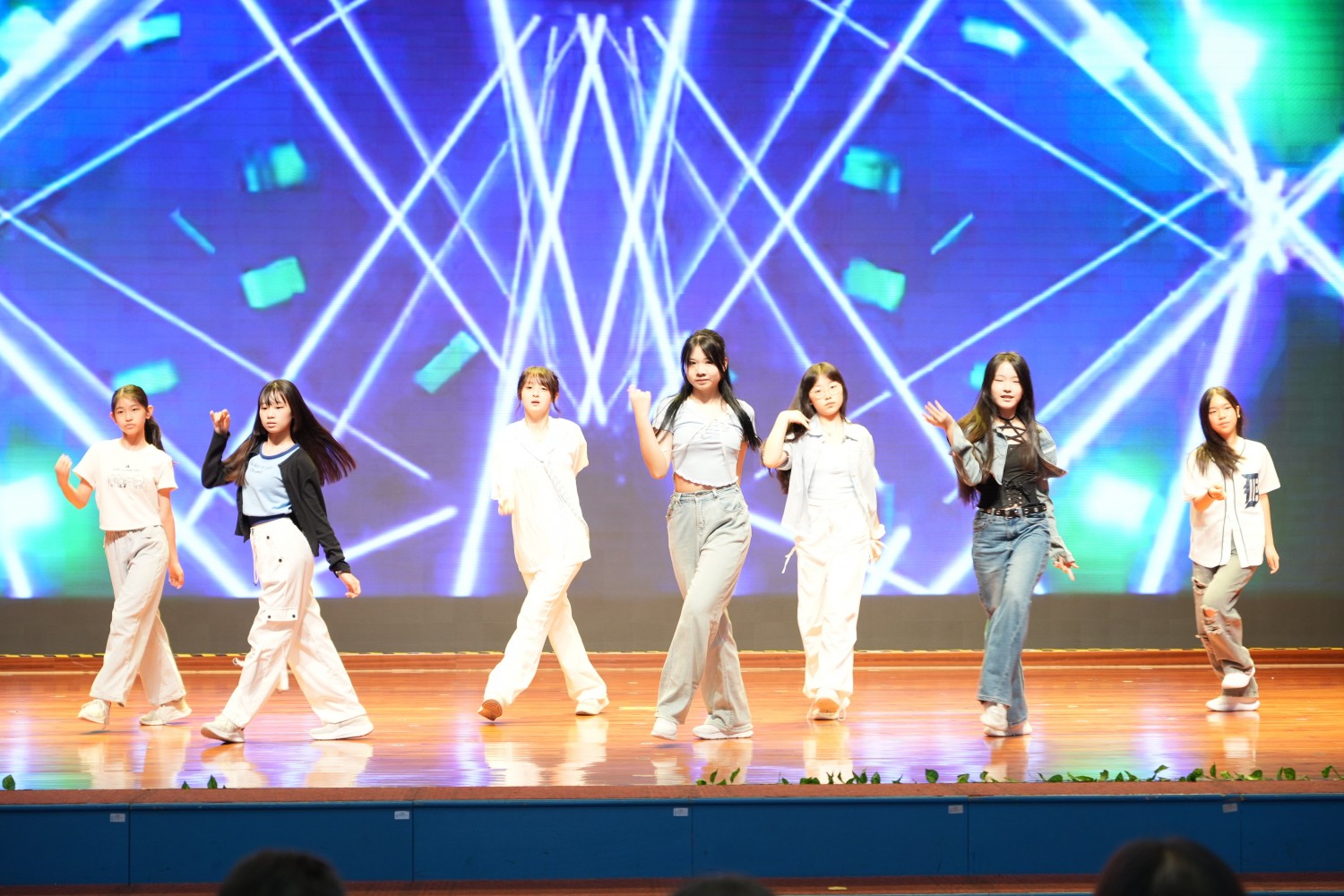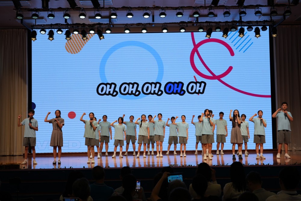 歌舞演出燃點青春激情,中學合唱團和葡語中階班的同學分別以歌曲《世界贈予我的》及《Eu Tentarei》傳達對生活的感悟,鼓勵大家要積極向前。流行舞班和街舞班的同學碰撞著青春的熱情,跳躍舞動間展示了舞者們的瀟灑自信。英語百老匯的《Harmony of Dreams》將活力四射的歌舞交織成追逐夢想的動人旅程。藝術體操的《象王行》讓觀眾在器械翻飛間感受流動的東方美學。溫州市實驗中學師生也一同參與到慶典當中,為英才師生帶來別出心裁的民族舞蹈《赤紅》,以舞蹈講述屬於草原的故事。趣味種植班以視頻呈現勞動之趣,躲避盤班展示體育的創新活力,刀術表演更是技驚四座,英才星空的同學們以聲音為媒介呈現班級的多元特色,禮堂內外亦陳列出同學們的創意成果。