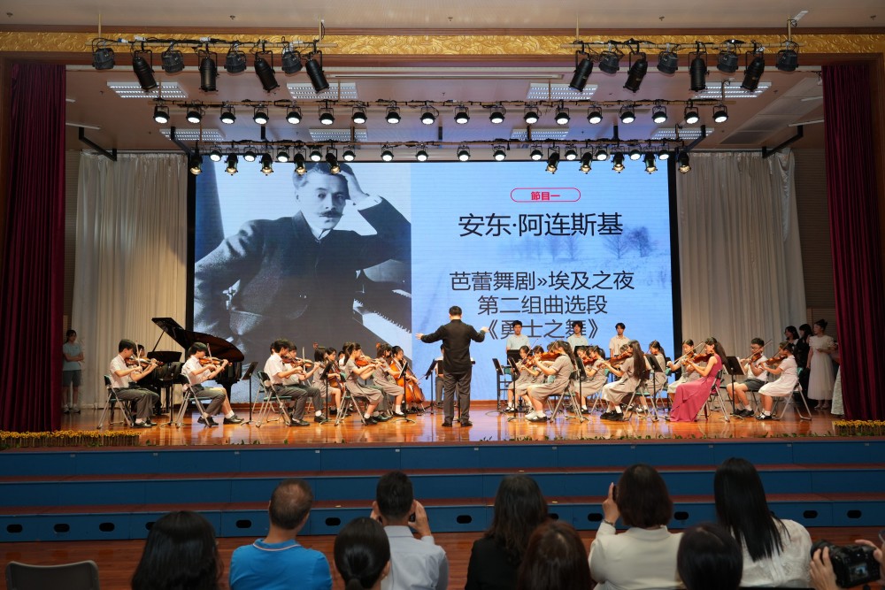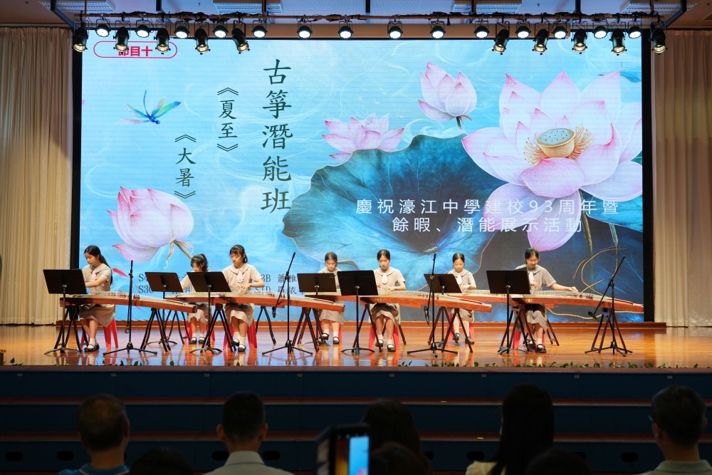 樂器演出薈萃中西,弦樂團以俄羅斯經典樂章《勇士之舞》,組曲《三套車》、《浪漫曲》和《埃及之夜》拉開了演出的帷幕,悠揚的樂聲把台下的觀眾帶入到躍動的旋律當中。古箏重奏以《夏至》《大暑》兩曲展現了傳統樂器的魅力,讓節氣的特色於弦上生輝。中樂合奏潛能班的同學以《彩雲追月》和《萬疆》奏響學子的愛國之情,讓台下觀眾一同在樂聲中感受音樂的磅礴力量。
