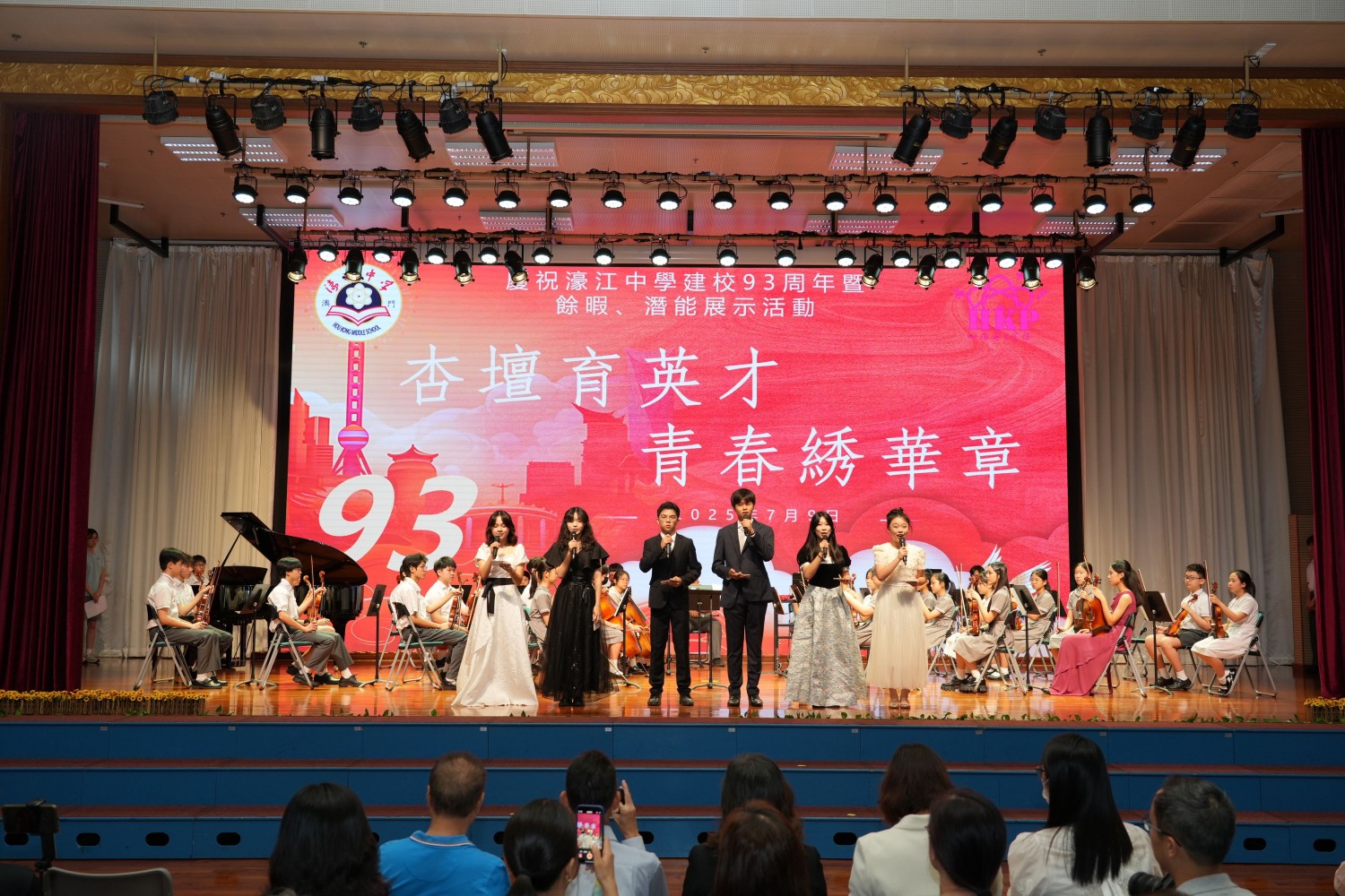 為慶祝濠江中學建校93周年,濠江中學附屬英才學校於7月9日上午舉辦“杏壇育英才,青春綉華章 ”中學餘暇潛能展示活動,並特別邀請了學生家長和溫州市實驗中學交流團的師生蒞臨出席。在活動中,英才學子把過去一年來在餘暇和潛能活動方面的收穫彙聚成兩個小時的精彩演出,全面展現了學校的多元育人成果與英才學子的蓬勃朝氣。