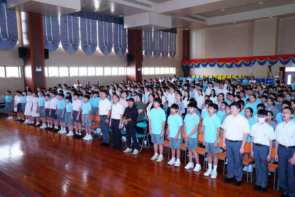 活動在同學們齊聲高唱國歌中拉開帷幕。濠江中學尤端陽校長致辭,他簡要回顧了抗戰歷史,向同學們介紹楊靖宇將軍英勇抗敵的壯烈歷程,勉勵同學們要銘記今日和平繁榮的來之不易,學習楊靖宇將軍崇高的愛國精神,從英雄事跡中汲取堅韌不拔、勇於擔當的力量。