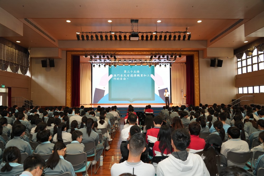 講座內容系統全面,涵蓋《憲法》對日常生活的意義及其發展歷程,並重點闡釋《基本法》與《憲法》之間的緊密關係。嘉賓進一步介紹了全國人民代表大會、國務院等國家機構,並梳理《中葡聯合聲明》與《澳門基本法》的歷史脈絡,詳細講解“一國兩制”、“高度自治”、“澳人治澳”的三大核心原則,以及澳門居民在基本法保障下的權利義務。