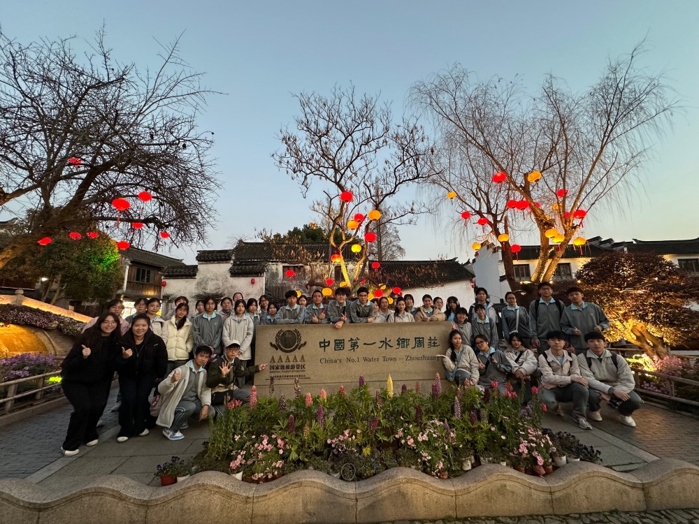 研學首日,師生從澳門飛抵上海後,即乘車前往“中國第一水鄉”周莊古鎮。師生在古樸的江南風貌中,感受中華傳統文化的深厚底蘊,體會古人與自然和諧共生的智慧。