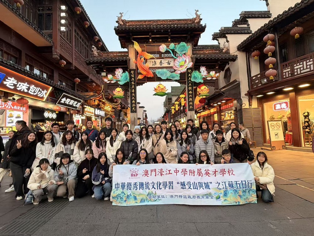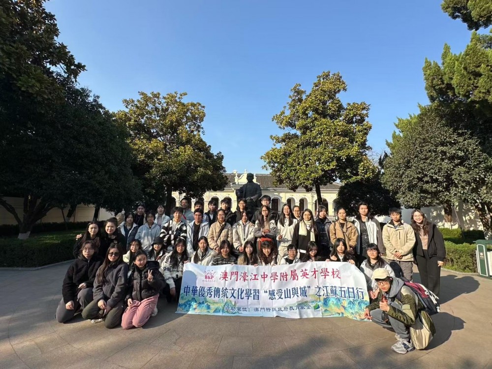 為深化學生對祖國歷史文化的認識,厚植愛國愛澳情懷,3月10日至14日,濠江中學附屬英才學校組織師生赴江蘇開展為期五天的“感受山與城愛國之旅”研學活動。本次考察活動獲澳門特區政府教育基金“學校發展資助計劃”資助。行程橫跨蘇州、揚州、南京三地,透過實地走訪歷史遺跡與文化地標,引領學生在行走中感悟歷史、在體驗中傳承愛國精神。