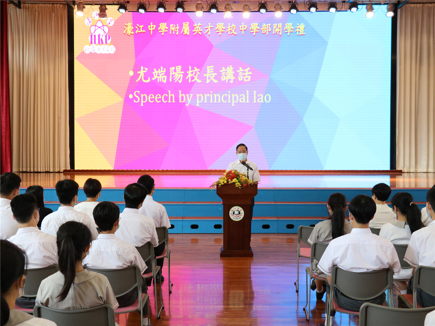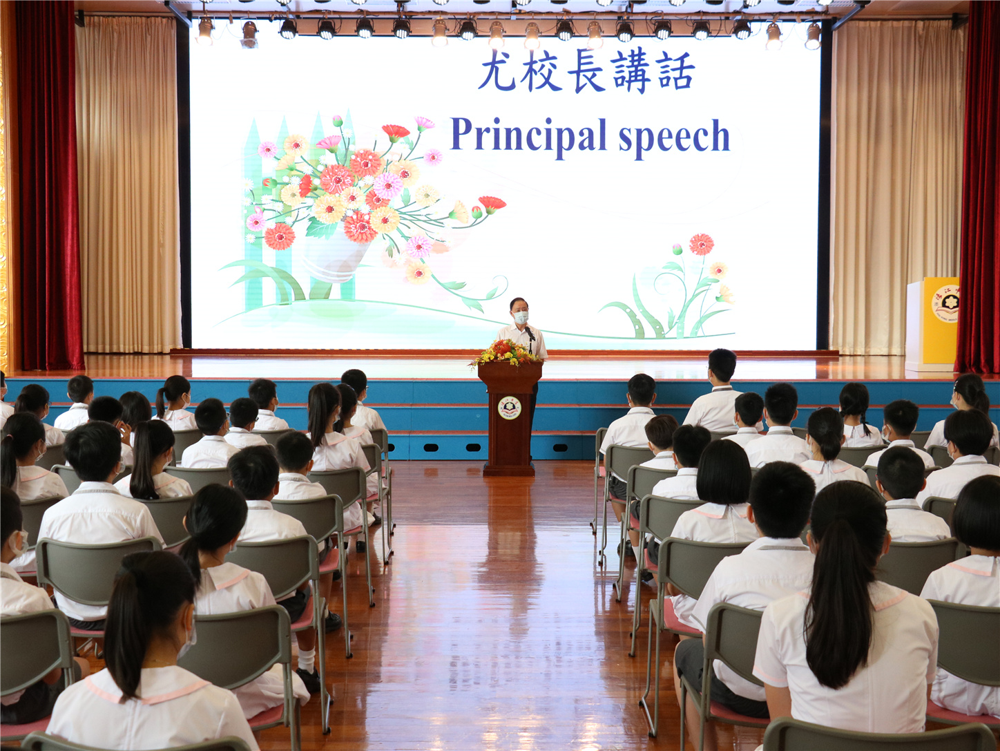 開學典禮上,校長尤端陽,副校長陳虹、陳步倩分別於各校部作開學致辭,希望師生堅持做好防護措施,勉勵同學們傳承愛國愛澳的思想,弘揚中華文化,勤奮學習,積極創新,學會感恩、尊重和包容,做精神豐富儒雅的人。