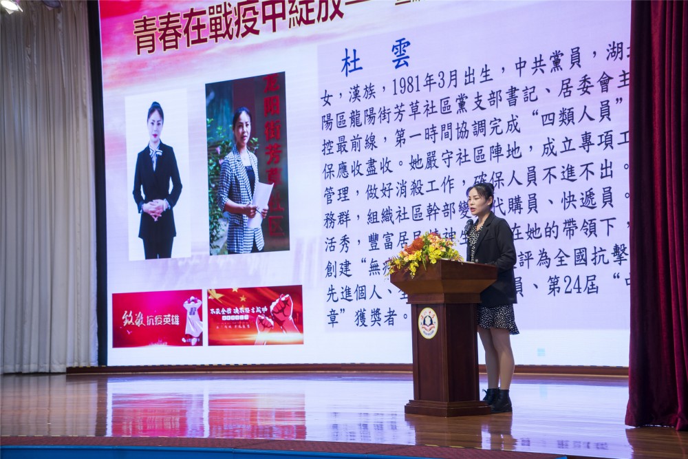 尤端陽校在講話中表示,相信全體師生通過這場宣講報告會,對挺身而出、逆行出征,積極投身抗疫一線的抗疫英雄的感人事蹟有了更深入的認識和了解,他們用親身經歷講述了“中國抗疫故事”,觸動全體師生。尤校長勉勵師生要學習優秀抗疫典型、弘揚抗疫精神。