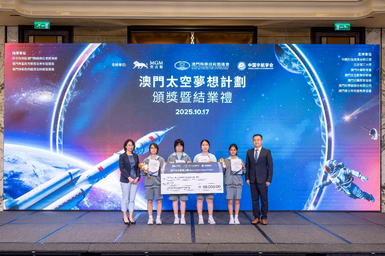 由我校張元青、梁楚喬、陳悅晴、陳曉楠同學組成的隊伍分數位列全澳所有參賽隊伍中的第三名,斬獲銅獎!同時,該隊伍也將代表澳門參加2025年11月於香港舉行的空間科學與載荷大賽全球總決賽,進一步挑戰國際舞台。