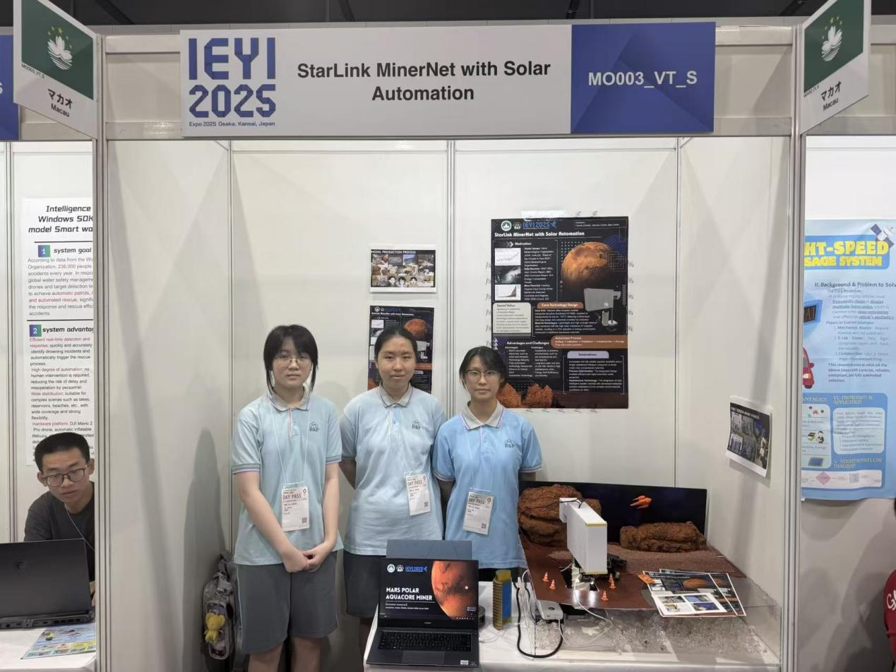 日前,第21屆日本大阪iEYI國際青年發明家博覽會圓滿結束,全球13個國家及地區的150件優秀作品參賽,隊伍獲獎比率為53.9%,澳門代表團表現優異,在賽項上共斬獲1銀、2銅。其中,英才校部張元青、陳曉楠、陳悅晴作品《StarLink MinerNet with Solar Automation》(星鏈礦能:光伏自動化采礦網絡),在競爭激烈的“前瞻技術”(Visionary Technologies)類別中榮獲銅獎。期望同學們繼續發揚創新精神,在科技道路上不斷探索、勇攀高峰!指導教師為:李克儉、梁敏聰、呂霆翀、邱樂豐、陳穎信、潘德恩、楊逸。